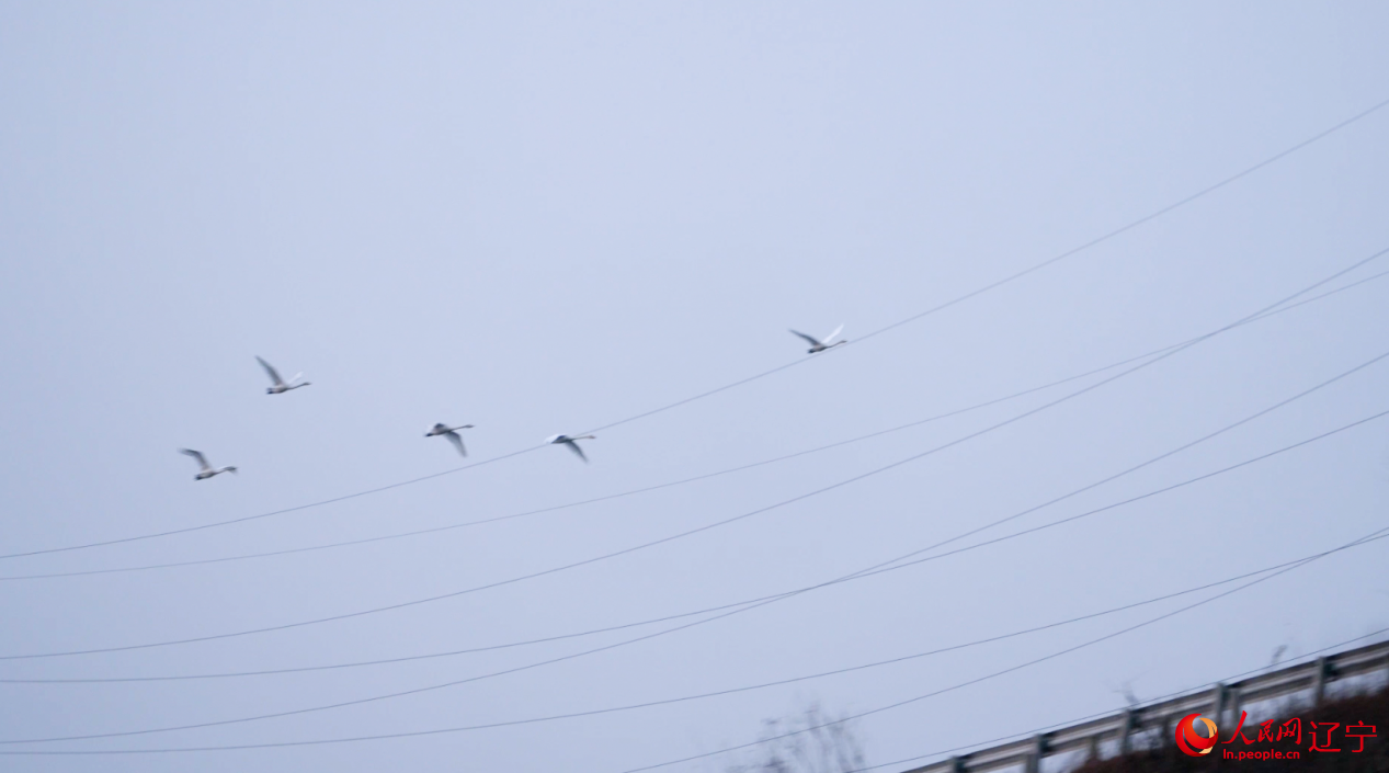 天鵝飛過66千伏的輸電線。人民網記者 邱宇哲攝