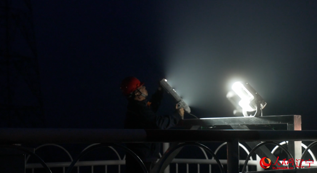 劉玉山調整遠程探照射燈的照明方向。人民網記者 邱宇哲攝