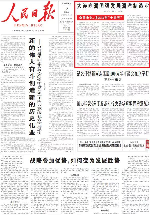 人民日报头版报眼点赞:大连向海图强发展海洋制造业